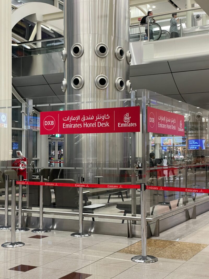 O balcão da Emirates Hotel Desk fica próximo à saída do aeroporto de Dubai