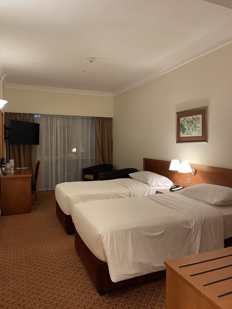 O hotel fica a cerca de 10 minutos do aeroporto, mas ele é grande — então ainda tem uma boa caminhada até chegar ao quarto.